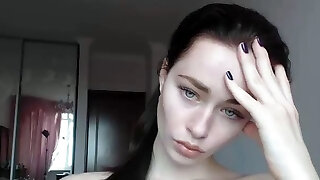 惊人的青少年猫复盖在精子-关闭了真正的业余