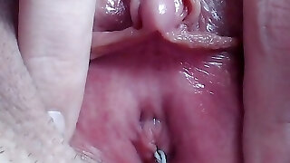 极端宏观拍摄onanism与沉重的nub潮湿的高潮