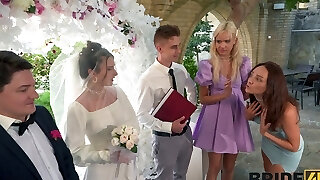 漂亮的新娘让她的新郎欺骗他们的新婚之夜