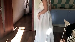 Hotwife showing her trampy pregnant body in tight bodysuit to her cuckold hubby and after jerks to the orgasm - Milky Mari