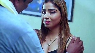 诱人的黑发天后与巨大的funbags庆祝她的第一天在工作