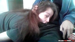 饥渴的青少年的喉咙stepdaddy的大家伙之前把它里面