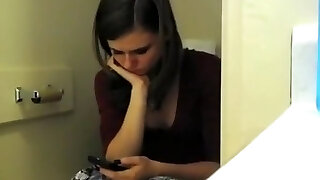 抓住了隐蔽的网络摄像头,Stagging我妈妈的手指敲打在洗手间